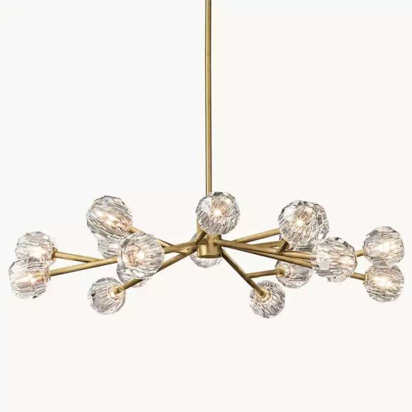 This collection of chandelier, pure and minimalist in style, features stunning, interlocking open and closed chains designed with crystalline crystals. The stylized chains are suspended without wires, creating an elegant cascade of shimmering light.