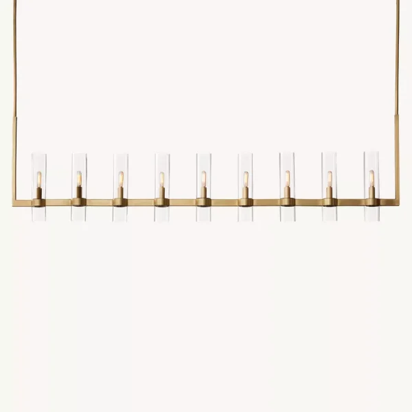 The focal point of the collection of modern sculptural lighting, solid brass is cast in hand-formed molds to achieve intricate, sensual textures that shape the minimalist geometry of the surface, and its chandelier glow is moody and atmospheric, showcasing the beauty of modern modern living rooms.