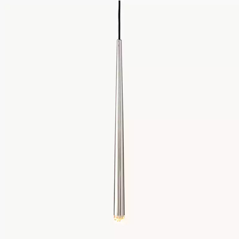 Defined by a cluster of solid brass elements suspended from fine black cords, this collection offers a striking silhouette. Light is gently diffused from recessed LEDs housed in the faceted glass, creating a warm and inviting atmosphere.