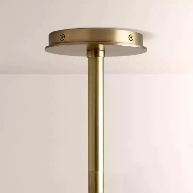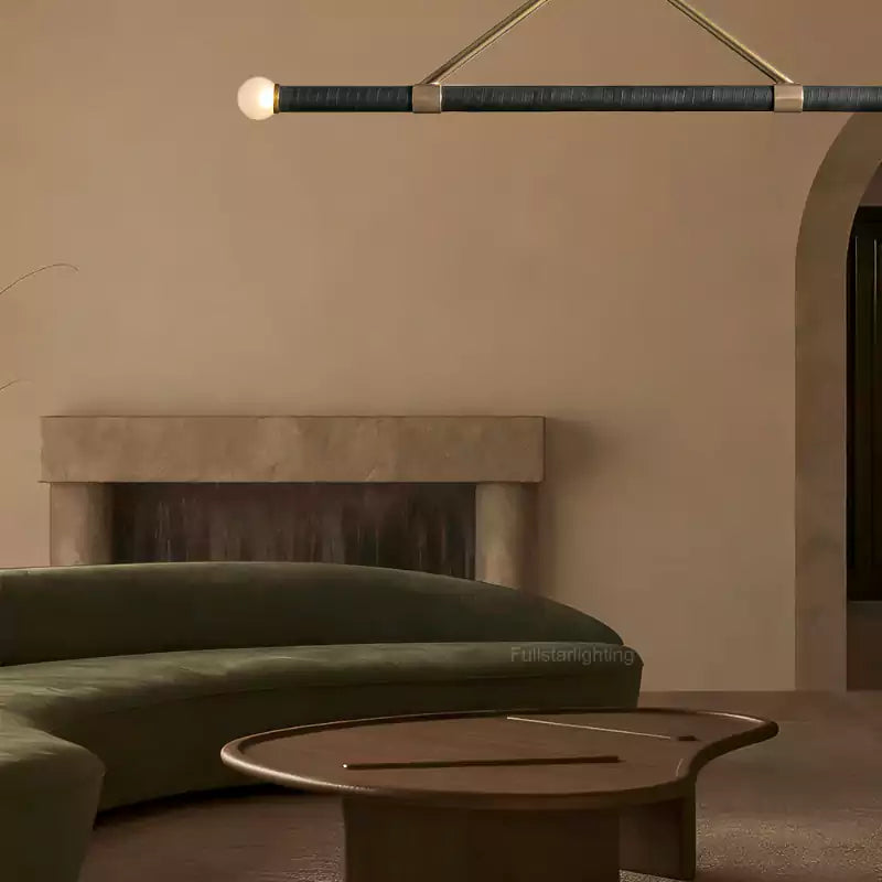Modern design elevated by mixed materials. The Randall features a burnished brass finish, accented with your choice of brown or black leather. Its two globe bulbs provide warm, ambient light from every angle.
