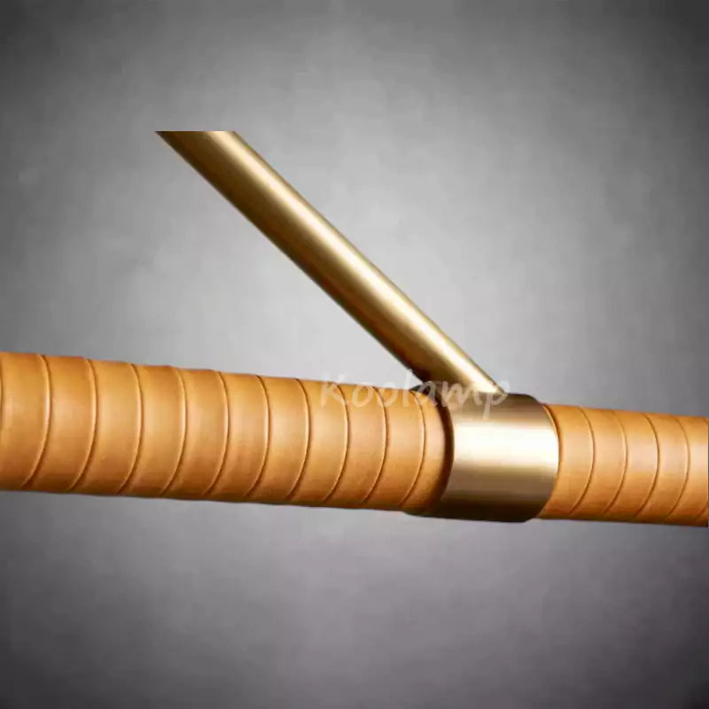 - This Rantall collection is crafted from burnished brass or bronze-plated steel with wrapped leather detailing and two frosted glass globes.